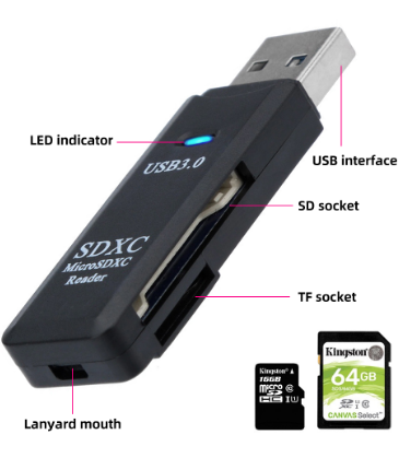 싼 초고속 미니 USB 3.0 듀얼 카드 리더 어댑터 도매 주문 로고 인쇄 USB3.0 카드 리더